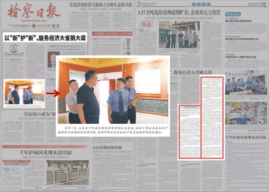 《检察日报》头版头条刊发平阴县检察院所办知识产权保护案例 -完美体育平台入口官网