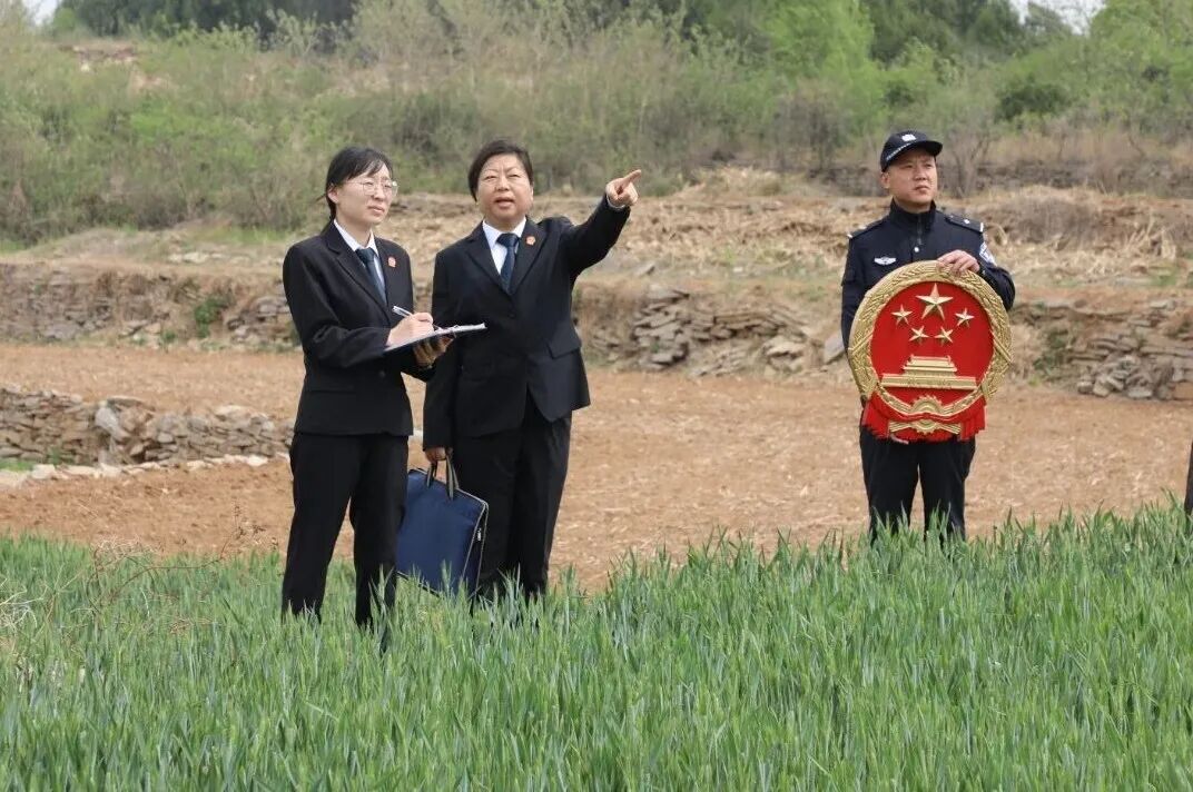 平阴法院孔村法庭对一起承包地纠纷开展现场勘验。